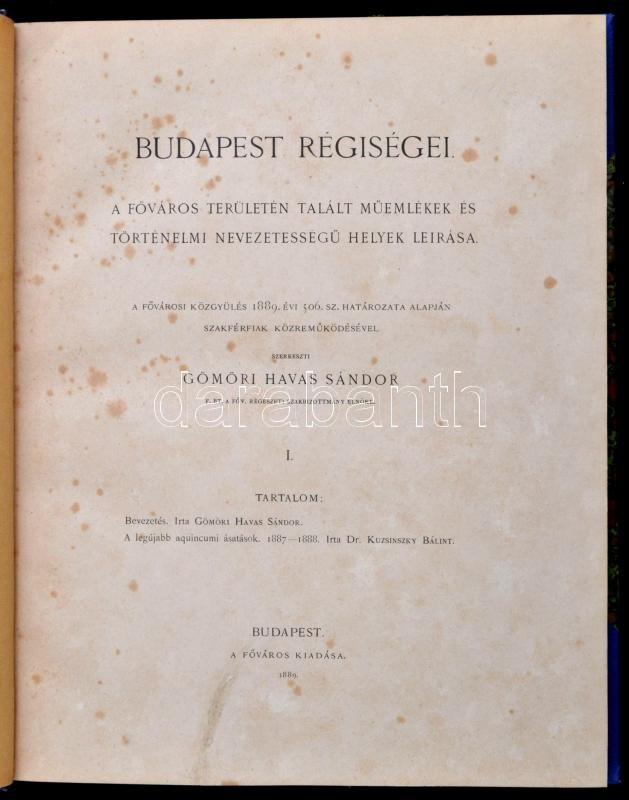 1889 Budapest Régiségei. (1. szám.) A főváros területén talált műemlékek és történelmi nevezetességű helyek leírása. Szerk.: Gömöri Havas Sándor. Bp.,1889, Főváros, 170 p.+1 t. Átkötött félvászon-kötés, a címlapon kis szakadással, az első két lap kissé foltos.