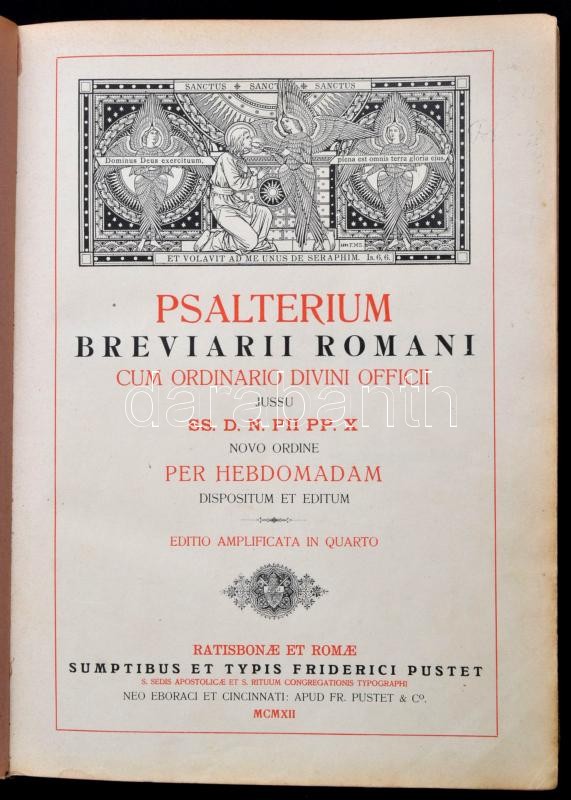 Psalterium breviarii Romani. Regensburg - Róma, 1912, Friedrich Pustet... https://www.darabanth.com/hu/346-Gyorsarveres/346.0/Konyvek/Konyvek-Vallas~1500014/Psalterium-breviarii-Romani-Regensburg-Roma-1912-Friedrich-Pustet-Serult-gerincu-borkotC3~II1963241