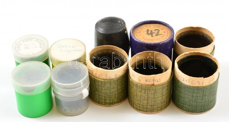 Leírás: 10 db diafilm (Öreg néne őzikéje, Gulluiver Liliputban, Jancsi és Juliska, stb.), némelyik doboztető hiányzik