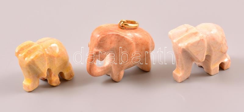 Leírás: 3 db ásványból faragott elefánt, m: 2; 2,5 és 3 cm