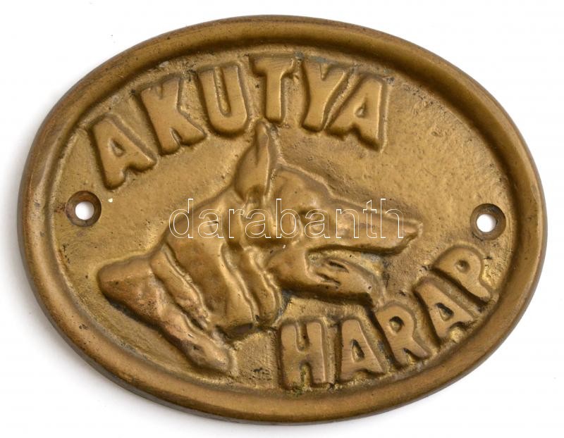 Leírás: "A kutya harap" réz tábla, 12×9,5 cm