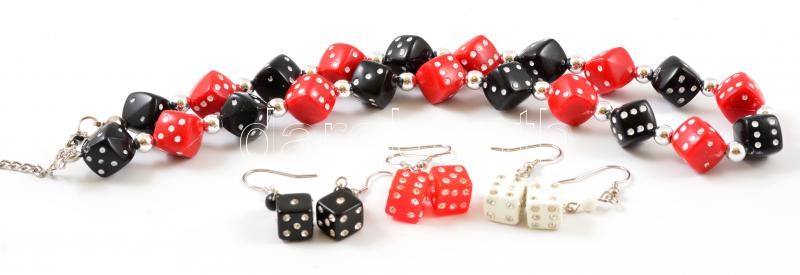 Leírás: Dobókockás nyaklánc, 3 pár dobókockás fülbevalóval