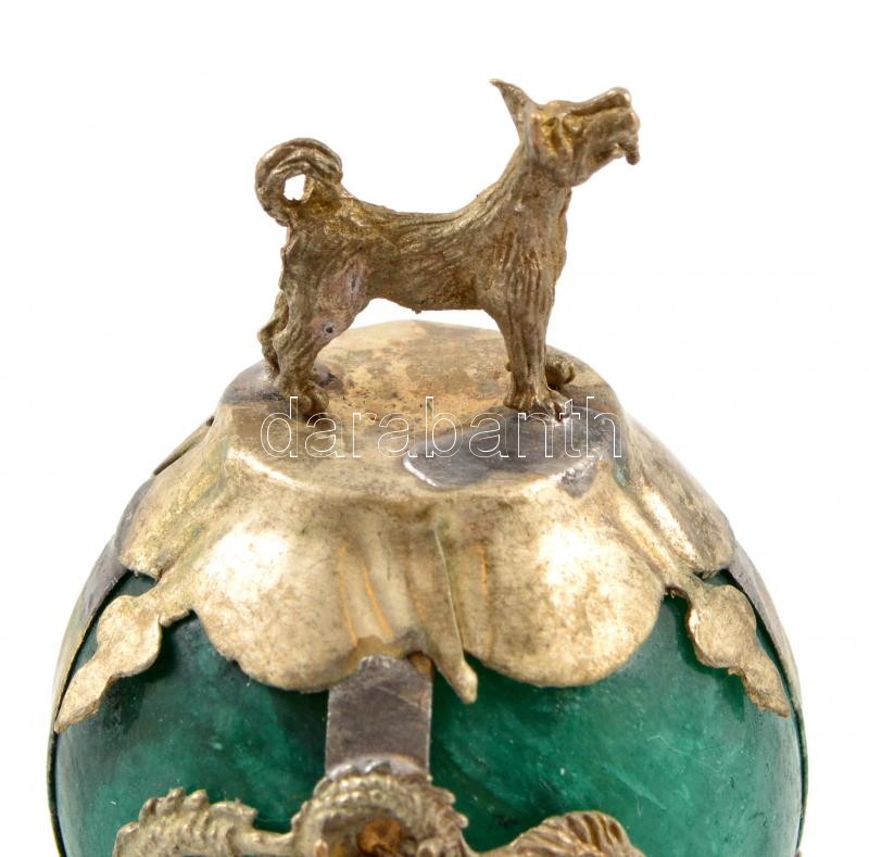 Jáde gömb kutyás fém foglalatban, m: 5 cm https://www.darabanth.com/hu/346-Gyorsarveres/346.0/Mutargy-papirregiseg-egyeb/Bolhapiac~500011/Jade-gomb-kutyas-fem-foglalatban-m-5-cm~II1962473