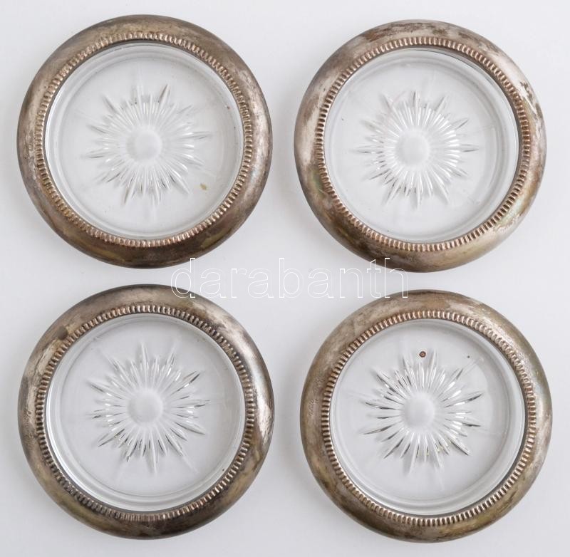 Leírás: Sheratonn gravírozott feliratú üveg tálkák ( 4 db), ezüstözött fém peremmel, d:10 cm