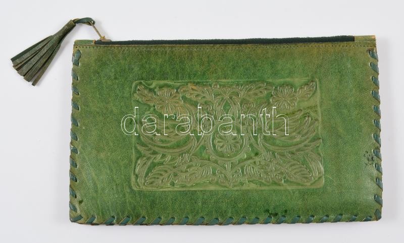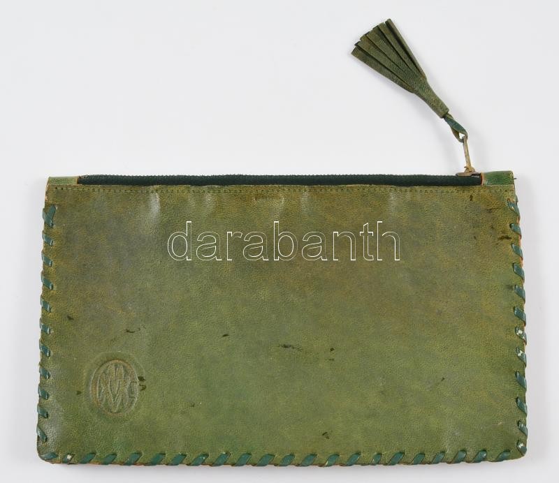 Leírás: cca 1960 Csepel Vas- és Fémművek ajándék bőr neszesszeres táska, Varga Ilus bőrdíszműves munkája, 12×20 cm