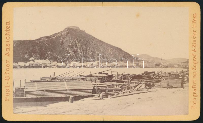Leírás: cca 1860 Budapest, kilátás a pesti oldalról a Citadellára és Gellért-hegyre, keményhátú fotó Zograf & Zinsler műterméből, 6,5×10,5 cm