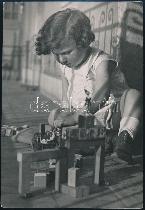 Leírás: cca 1933 Kinszki Imre (1901-1945) budapesti fotóművész pecséttel jelzett, feliratozott, vintage alkotása (Gáborka), 17x11,5 cm