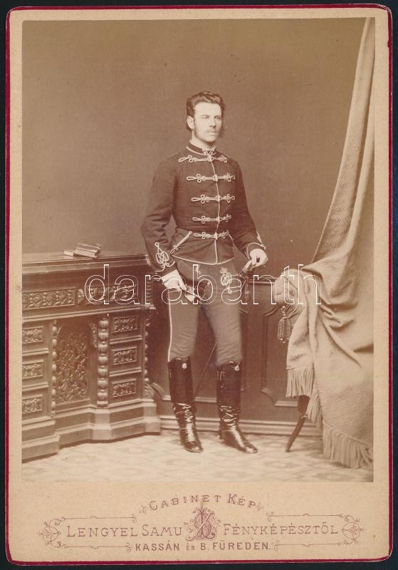 cca 1878 Görgey József (1844-1912) cs. és királyi tábornok, vezérőrnagy, Görgey Artúr unokaöccsének fiatalkori fotója, Lengyel Samu műterméből, hátoldalon feliratozva, szép állapotban, 16×11 cm