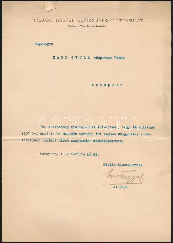 Leírás: 1907 Bp., báró Forster Gyula (1846-1932) történész, író aláírása Kann Gyula műépítésznek címzett levélen