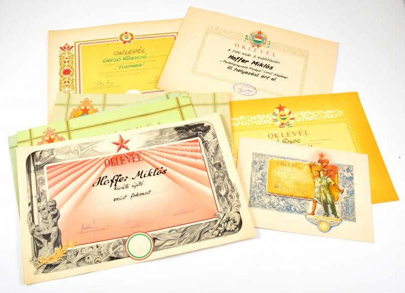 Leírás: 1963-1976 9 db oklevél a kommunizmus időszakából, az egyiken Horgos Gyula aláírásával