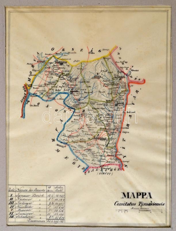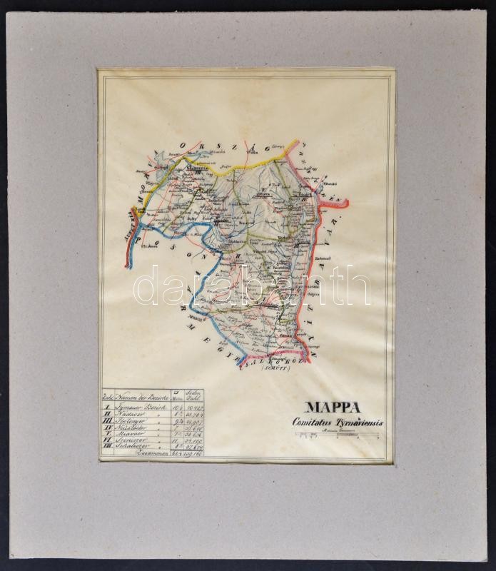 1850 Mappa Comitatus Tyrnaviensis. Nagyszombat megye kézzel rajzolt térképe. Másolta: Sztankovánszky Mihály mérnök. 22x29 cm paszpartuban / hand drawn map