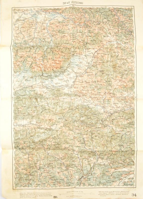 Leírás: 1914 Lőcse és környékének katonai térképe, kiadja: K.u.k. Militärgeographisches Institut, 63×43 cm