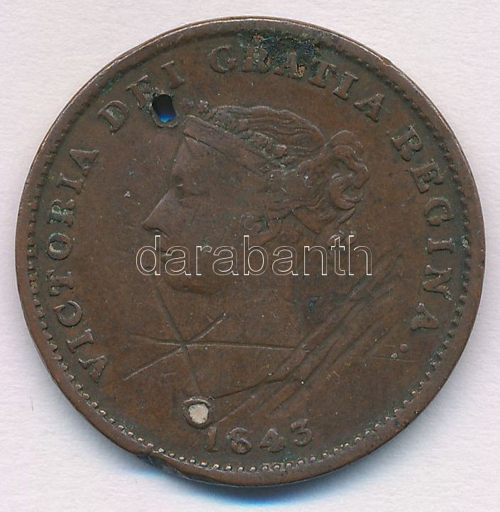 Leírás: Kanada / Új-Brunswick 1843. 1/2p Cu "Viktória" T:3 ly.,ü. Canada / New Brunswick 1843. 1/2 Penny token Cu "Victoria" C:F hole,ding