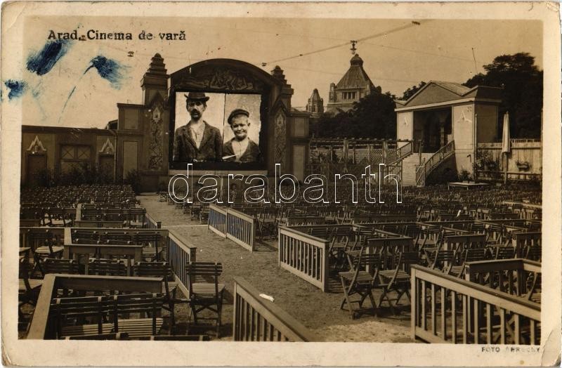 1926 Arad, Cinema da vara / Nyári mozi, szabadtéri vetítés, a vásznon "Zoro és Huru" / summer cinema, outdoor screening with "Ole & Axel" ("Long & Short"). photo (EK)