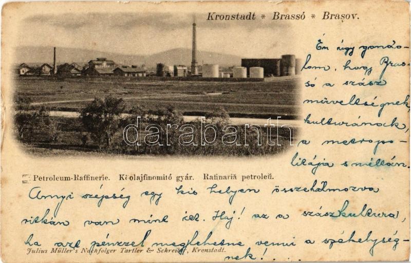 Brassó, Kronstadt, Brasov; Petroleum-Raffinerie / Kőolajfinomító gyár.... https://www.darabanth.com/hu/347-Gyorsarveres/347.0/Kepeslapok/Erdely~2500006/Brasso-Kronstadt-Brasov-Petroleum-Raffinerie-Koolajfinomito-gyar-Julius-Mullers-Nachfol~II1971441