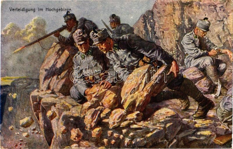 Verteidigung im Hochgebirge! / WWI Austro-Hungarian K.u.K. and German military art postcard, defense in the high mountains. Kriegshilfsbüro Nr. 231. s: Gustav Marr