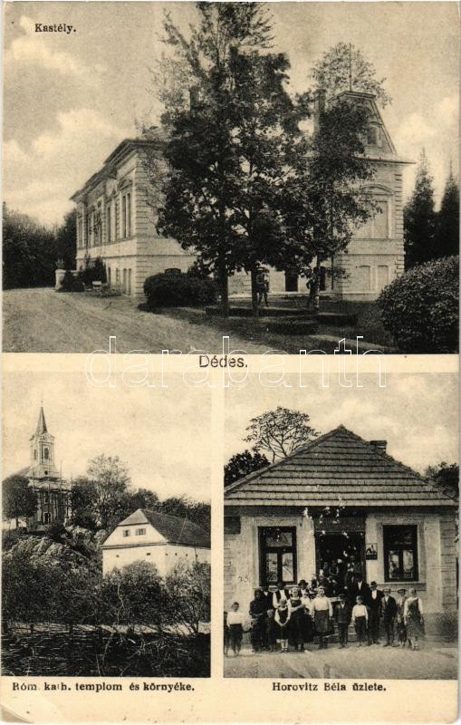 Leírás: 1933 Dédes (Dédestapolcsány); Római katolikus templom és környéke, Gróf Serényi István kastélya, Horovitz Béla üzlete (EK)