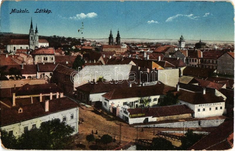 Miskolc, látkép, Giret Béla és Bendrin Béla üzlete https://www.darabanth.com/hu/347-Gyorsarveres/347.0/Kepeslapok/Magyarorszag~2500005/Miskolc-latkep-Giret-Bela-es-Bendrin-Bela-uzlete~II1968992