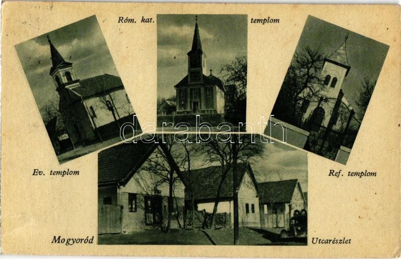 Leírás: Mogyoród, Római katolikus, református és evangélikus templom, utca. Özv. Kiss Jánosné kiadása (Rb)
