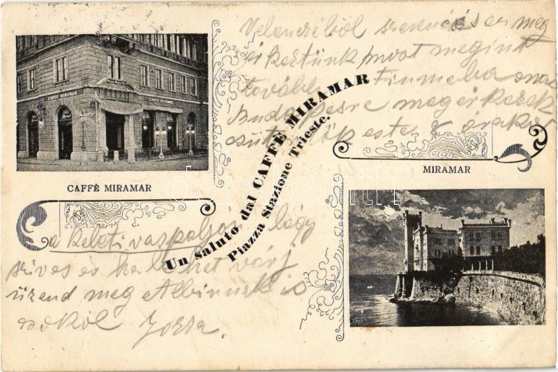 1908 Trieste, Trieszt; Cafe Miramar, Piazza Stazione / castle and cafe... https://www.darabanth.com/hu/347-Gyorsarveres/347.0/Kepeslapok/Olaszorszag~2500029/1908-Trieste-Trieszt-Cafe-Miramar-Piazza-Stazione-castle-and-cafe-Art-Nouveau~II1973029