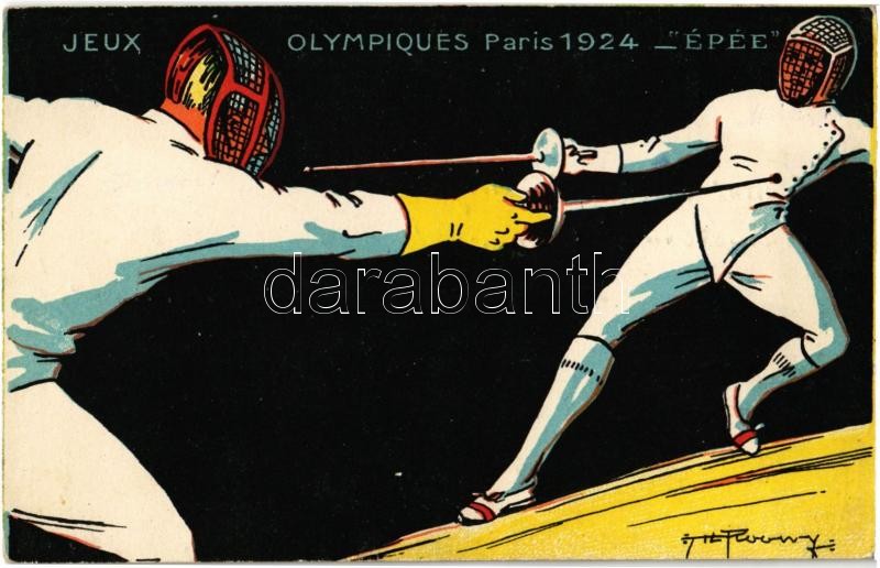 1924 Paris, Jeux Olympiques. Épée / 1924 Summer Olympics advertisement... https://www.darabanth.com/hu/347-Gyorsarveres/347.0/Kepeslapok/Sport~2500061/1924-Paris-Jeux-Olympiques-Epee-1924-Summer-Olympics-advertisement-postcard-Fencing-L-Pauta~II1972886