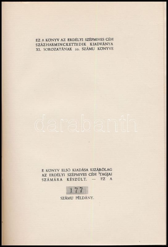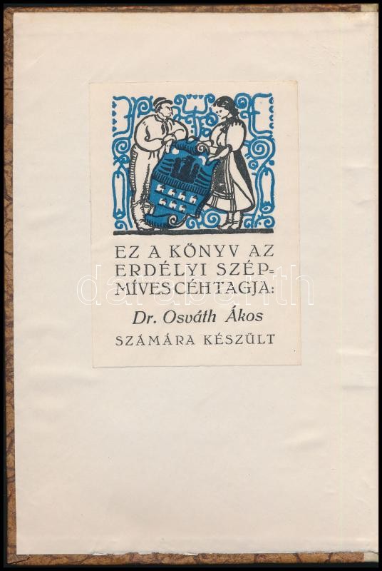 "Ez a könyv az Erdélyi Szépmíves Céh tagja: Dr. Osváth Ákos számára készült." ex libris-szel."