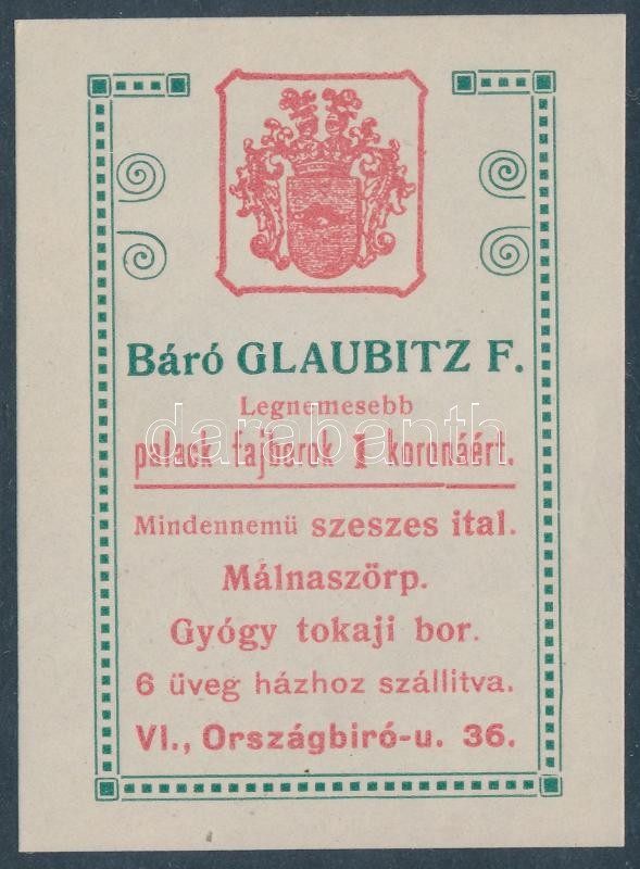 Báró Glaubitz F. reklámbélyeg https://www.darabanth.com/hu/347-Gyorsarveres/347.0/Magyar-filatelia-es-postatortenet/Parafilatelia~500015/Baro-Glaubitz-F-reklambelyeg~II1969082