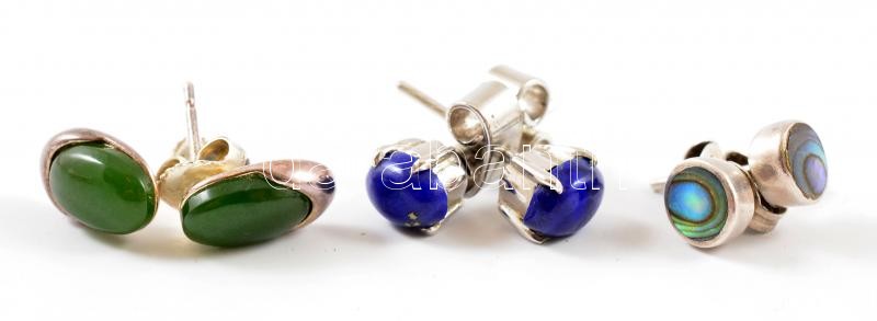 Leírás: 3 pár kövekkel díszített fülbevalópár, közte ezüst