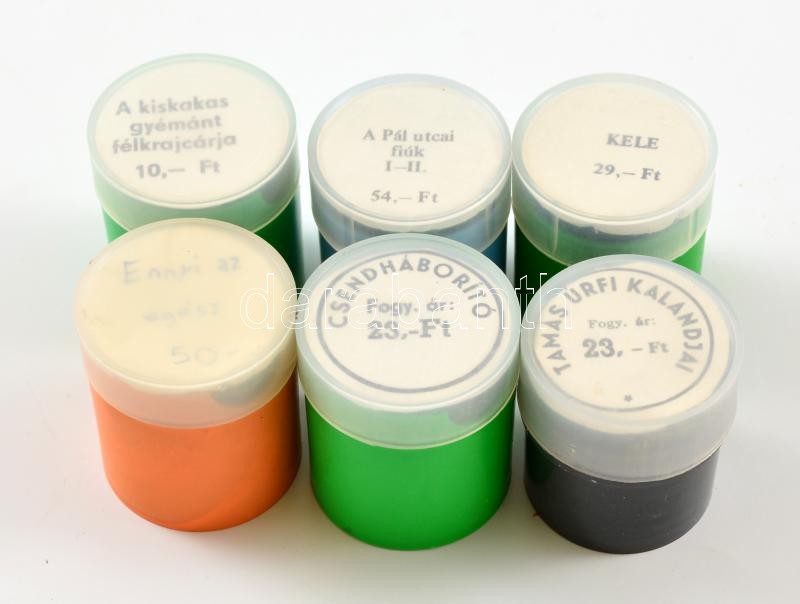 Leírás: 6 db diafilm (Tamás úrfi kalandjai, A kiskakas gyémánt félkrajcárja, A Pál utcai fiúk, Csendháborító, Kele, Ennyi az egész)