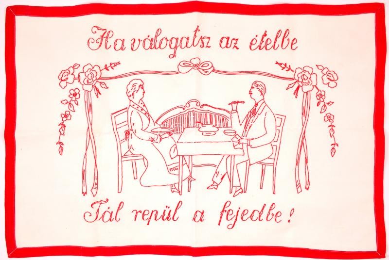 "Ha válogatsz az ételbe...", hímzett retró falvédő, 81×54 cm https://www.darabanth.com/hu/347-Gyorsarveres/347.0/Mutargy-papirregiseg-egyeb/Bolhapiac~500011/Ha-valogatsz-az-etelbe-himzett-retro-falvedo-81C39754-cm~II1951978