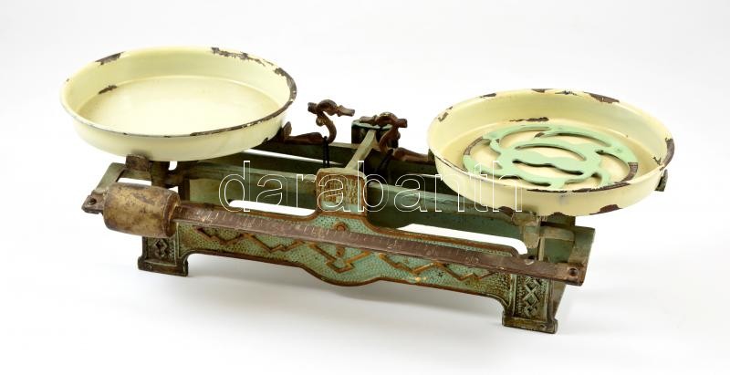 Régi fém asztali mérleg, zománcozott fém tálcákkal, a tálcákon lepatta... https://www.darabanth.com/hu/347-Gyorsarveres/347.0/Mutargy-papirregiseg-egyeb/Bolhapiac~500011/Regi-fem-asztali-merleg-zomancozott-fem-talcakkal-a-talcakon-lepattanasokkal-47x18x14-c~II1972223