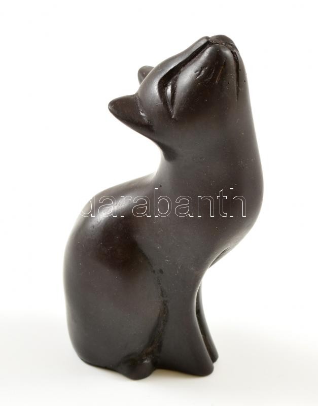 Leírás: Zsírkő? fekete cica, kisméretű szobor, m: 10 cm