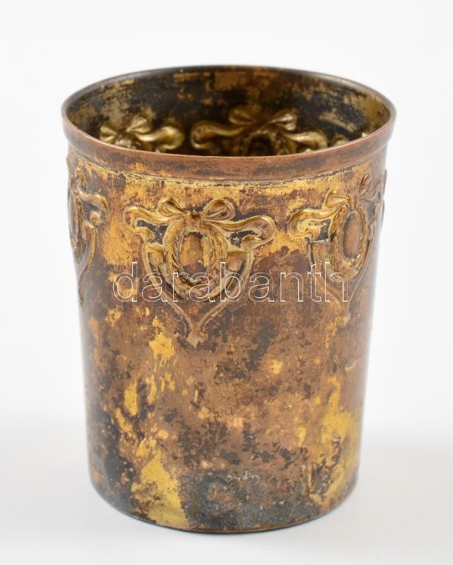 Leírás: Ezüst (Ag.) kupicás pohár, jelzett, aranyozás kopott, nettó:10 g