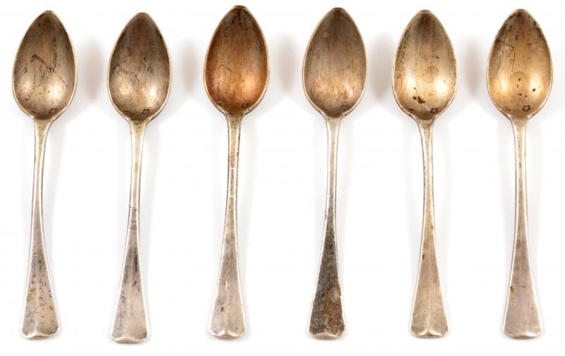Leírás: Ezüst (Ag) mokkás kanál, 6 db, jelzett, h: 11 cm, nettó: 90 g