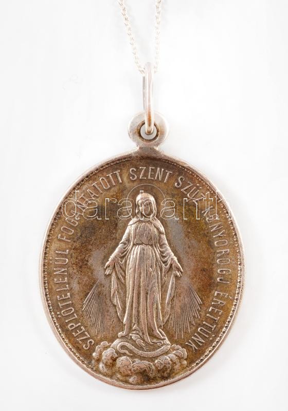 Ezüst(Ag) lánc Mária medállal, jelzett, h: 37 cm, nettó: 13,6 g https://www.darabanth.com/hu/347-Gyorsarveres/347.0/Nemesfem-Disztargyak-Orak-es-Ekszerek/Nemesfem-Disztargyak-Orak-es-Ekszerek~2500074/EzustAg-lanc-Maria-medallal-jelzett-h-37-cm-netto-13-6-g~II1968961
