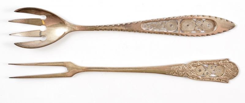 Leírás: Ezüst(Ag) villák, jelzett, h: 13 és 13,5 cm, nettó: 23 g