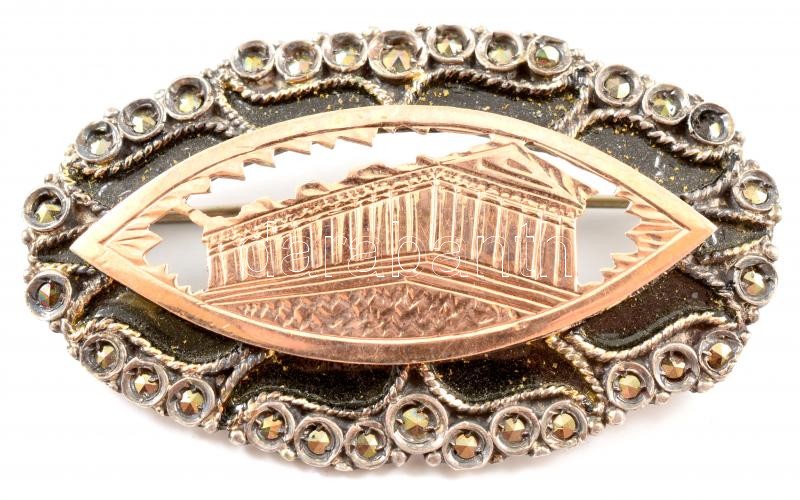 Ezüst(Ag) bross markazit kövekkel, jelzett, 4,5×2,5 cm, bruttó: 8,3 g