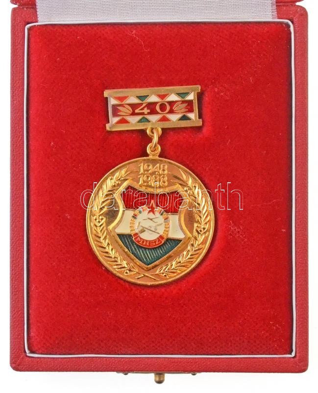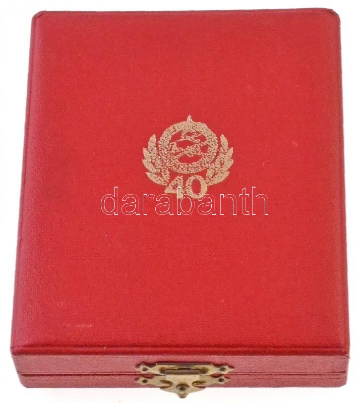 Leírás: 1988. "MHSZ 40" aranyozott és zománcozott kitüntetés eredeti dísztokban T:1-