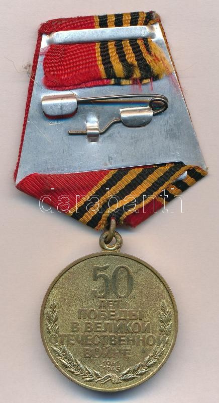 Russia 1995. "50th anniversary of victory in the Great Patriotic War 1941-1945" brass decoration with ribbon (32mm) C:AU