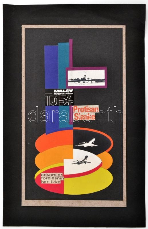 Leírás: cca 1980 Malév plakátterv?, kollázs, jelzés nélkül, 25×13 cm