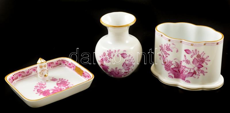 Leírás: Herendi indiai kosár mintás tálka ( 2db) és mini váza, kézzel festett, jelzett, 8×6,5 cm, 7,5×5 cm, m:6,5 cm