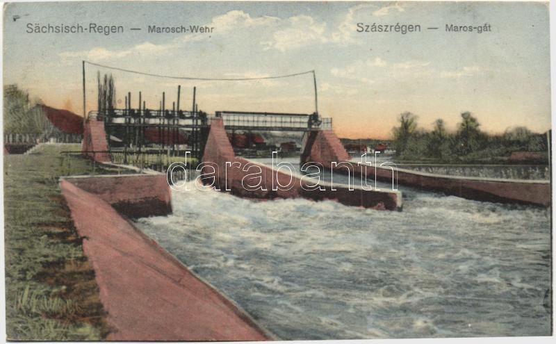Leírás: Szászrégen, Reghin; Maros gát / dam ( tűnyomok / pinholes)