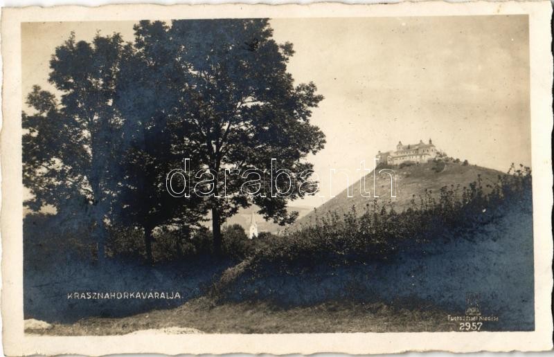 Leírás: Krasznahorkaváralja, Krásnohorské Podhradie; vár. Kiadja Fuchs József 2957. / Hrad Krásna Horka / castle