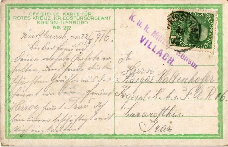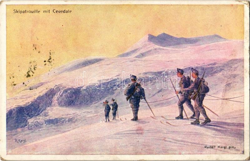 1916 Skipatrouille mit Cevedale. Kriegshilfsbüro Nr. 212. / WWI Austro-Hungarian K.u.K. military art postcard, ski patrol with Monte Cevedale s: Rudolf Kargl + K.u.K. Militär-Zensur Villach (EK)