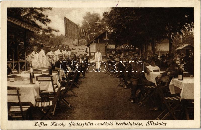 Miskolc, Leffler Károly Vadászkürt vendéglője, étterem, kerthelyiség p... https://www.darabanth.com/hu/348-Gyorsarveres/348.0/Kepeslapok/Magyarorszag~1000005/Miskolc-Leffler-Karoly-Vadaszkurt-vendegloje-etterem-kerthelyiseg-pincerekkel-Meinl-kav~II1977571