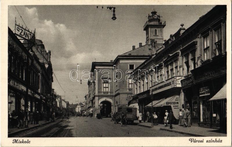 Miskolc, Városi színház, Epstein üzlete, autóbusz, dohánybolt, villamo... https://www.darabanth.com/hu/348-Gyorsarveres/348.0/Kepeslapok/Magyarorszag~1000005/Miskolc-Varosi-szinhaz-Epstein-uzlete-autobusz-dohanybolt-villamossin~II1977586