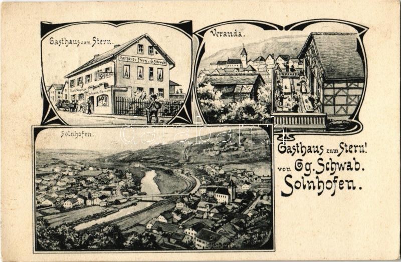 Leírás: 1914 Solnhofen, Gasthaus zum Stern von G. Schwab, Veranda / restaurant and hotel. Art Nouveau