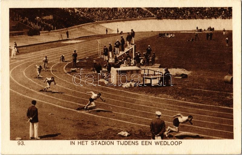 1928 Amsterdam - Olympische Zomerspelen. In het stadion tijdens een wedloop / Games of the IX Olympiad / 1928 Summer Olympics in Amsterdam. In the stadium during a race. Weenenk & Snel
