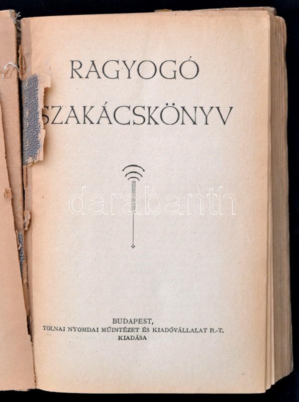 Ragyogó szakácskönyv. Bp.,én.,Tolnai, 352 p. Kiadói félvászon-kötés, kopott, foltos borítóval, sérült gerinccel és kötéssel, a borító részben elvált a könyvtesttől, de a könyvtest egyben van, az elülső szennylap szakadt.