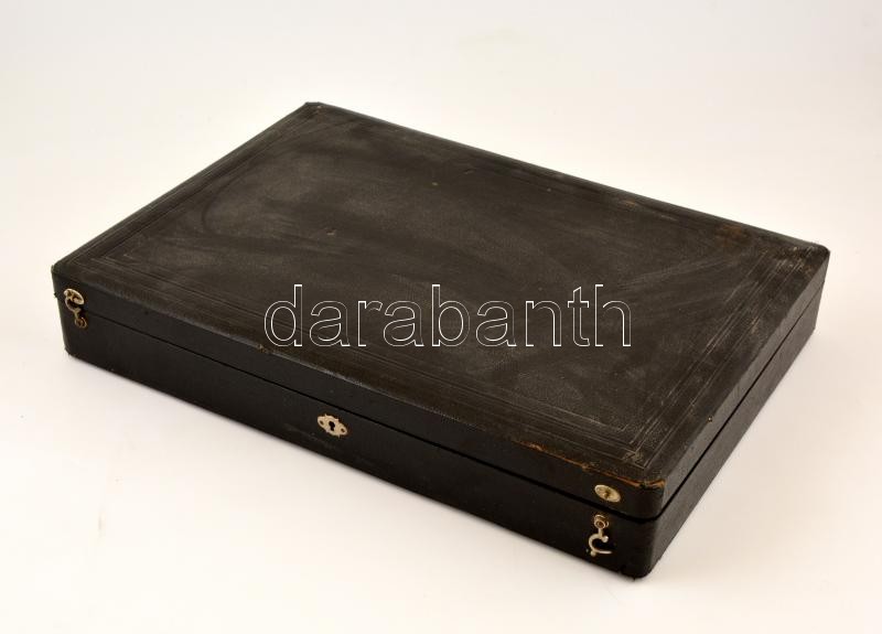 Leírás: Tizenkét személyes evőeszköz készlet, ezüstözött alpakka, jelzett (AL), eredeti dobozában, összesen: 47 db